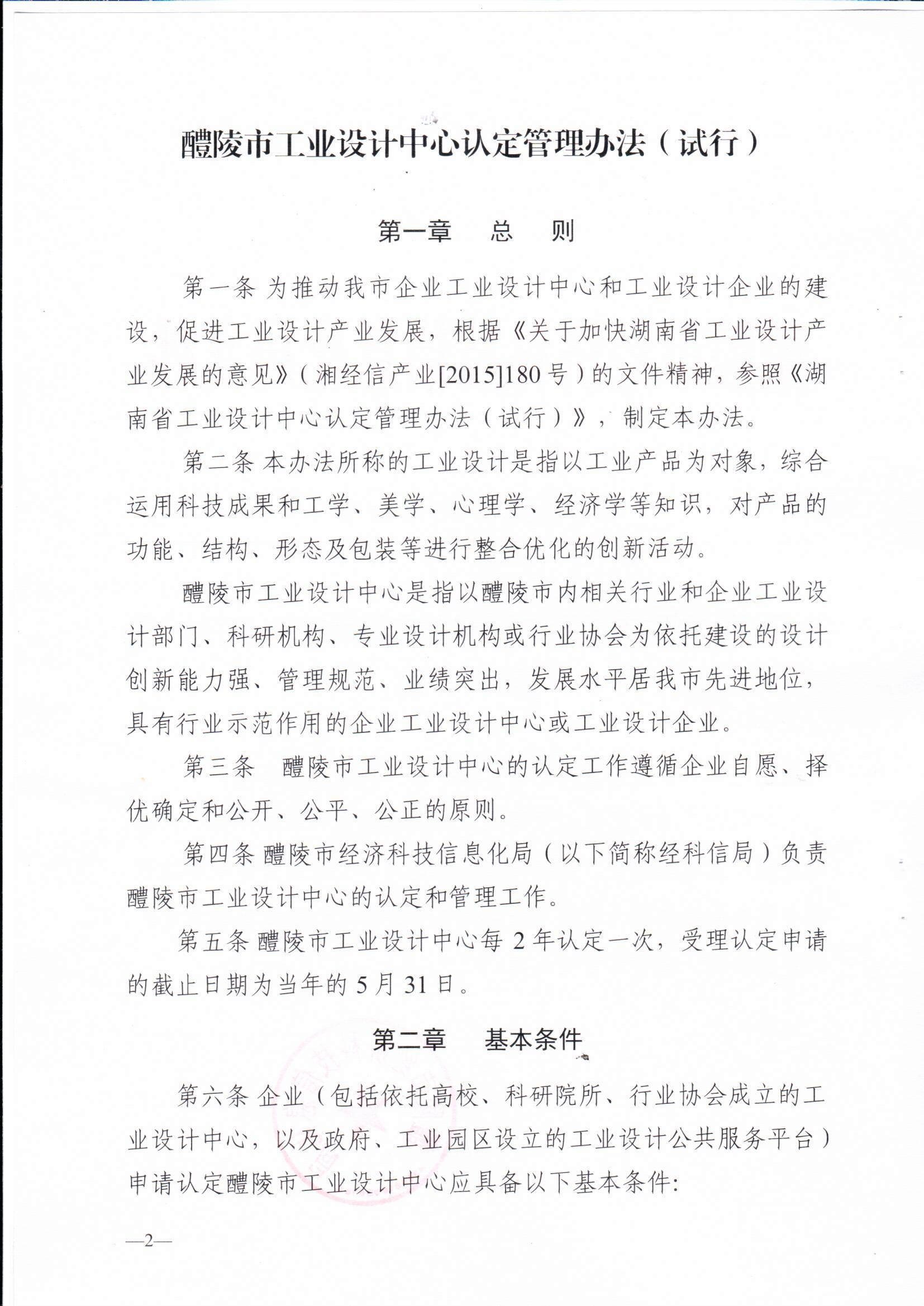 关于印发《醴陵市工业设计中心认定管理办法(试行)》的通知